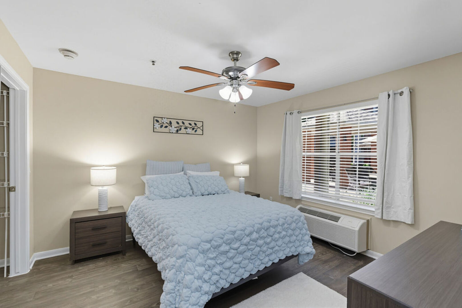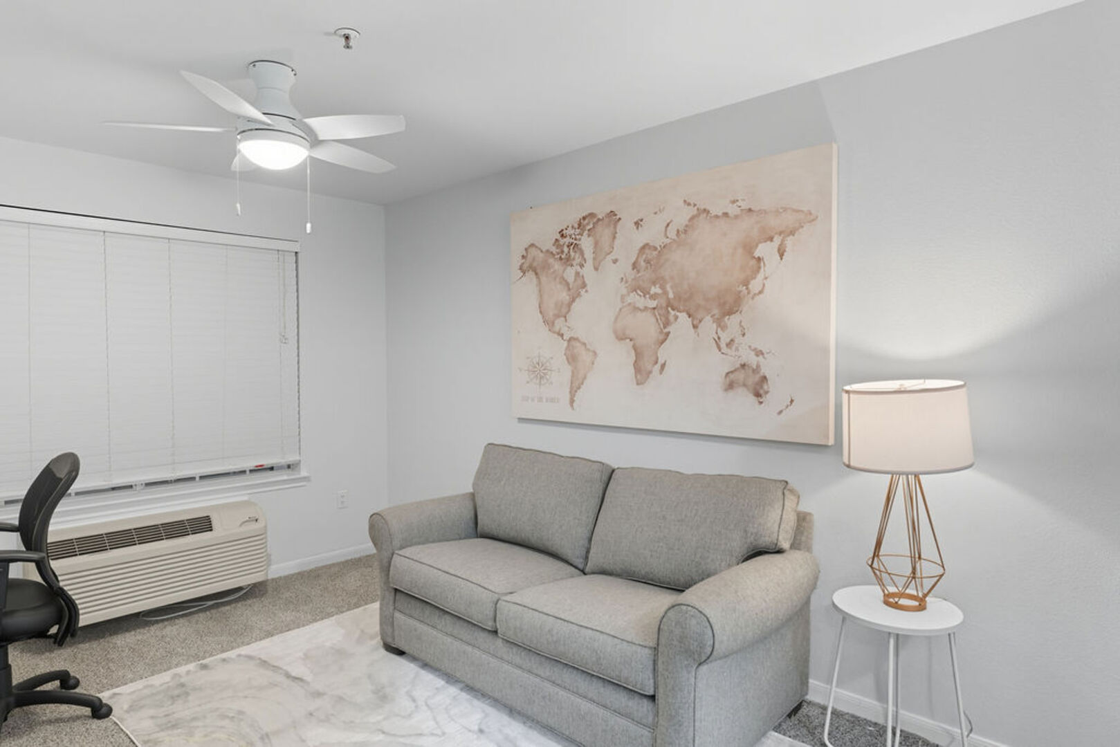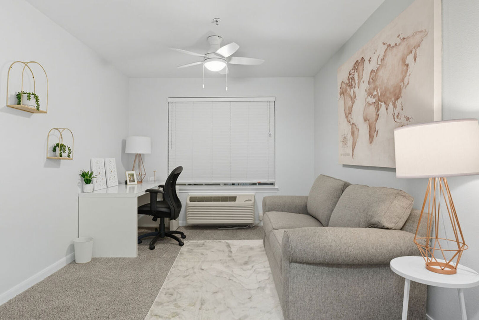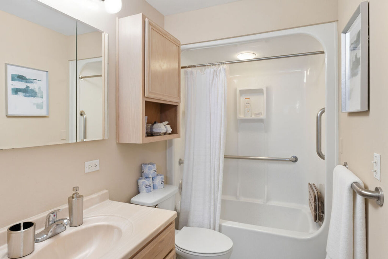 Our apartments for active adults 55+ offer expansive layouts with convenient features in every room. Fully equipped kitchens open to generously sized living and dining areas filled with natural light. Beyond the common area, large bedrooms provide plenty of storage space while deluxe bathrooms allow you to move around with ease. Select floor plans may also include a private outdoor space, such as a patio or balcony.
